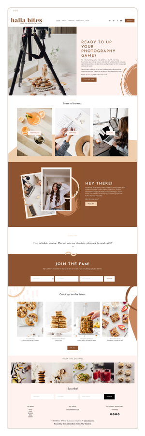 I design all my websites in Squarespace. I have designed in a lot of different platforms, but truly believe Squarespace is the most user-friendly and easiest for YOU to maintain and update as a small business owner. Once your design is set - updating photos, text, blogs and products is easy as pie. Plus, I will always be here to help you with any questions you may have!